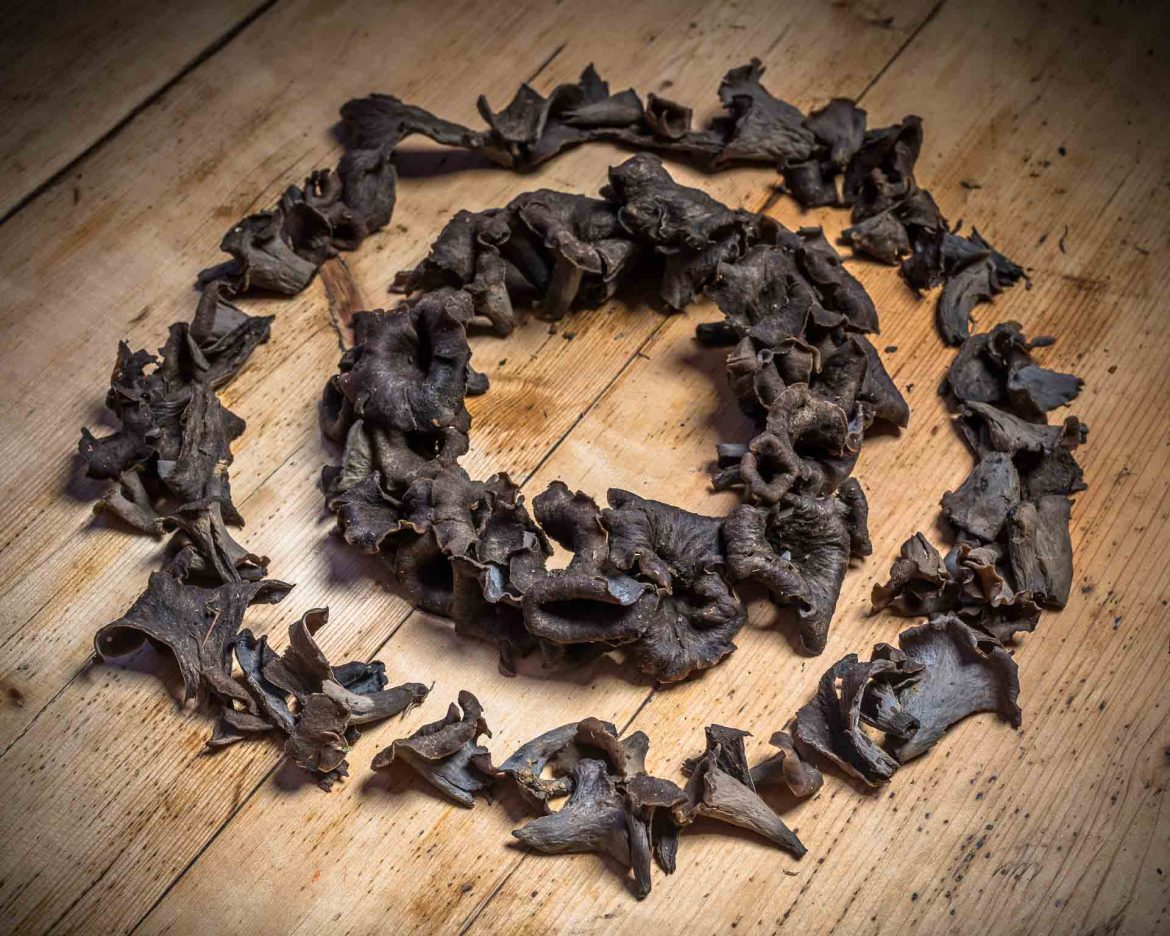 Due to their thin-skinned structure, trumpets can be dried very easily and then ground into mushroom powder
