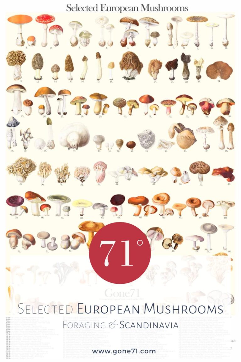 Discover the beauty and diversity of selected European mushrooms with this stunning poster. This poster showcases 100 species of mushrooms found in Europe, each depicted in vivid detail and labeled with its common English name, German name and scientific name.